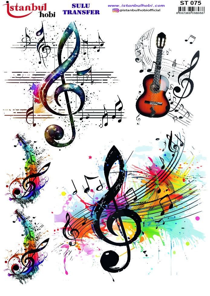 SULU TRANSFER (25x35) / MÜZİK ALETLİ VE NOTALI SULU TRANSFERLER (25 x 35)